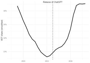 Sin embargo, desde finales de 2022 la situación ha cambiado. Coincidiendo con la llegada masiva de herramientas de inteligencia artificial, las empresas han vuelto a buscar cada vez más perfiles técnicos. A comienzos de 2025, más del 36 % de las ofertas de empleo en la Unión Europea ya estaban dirigidas a ocupaciones propias de la FP.